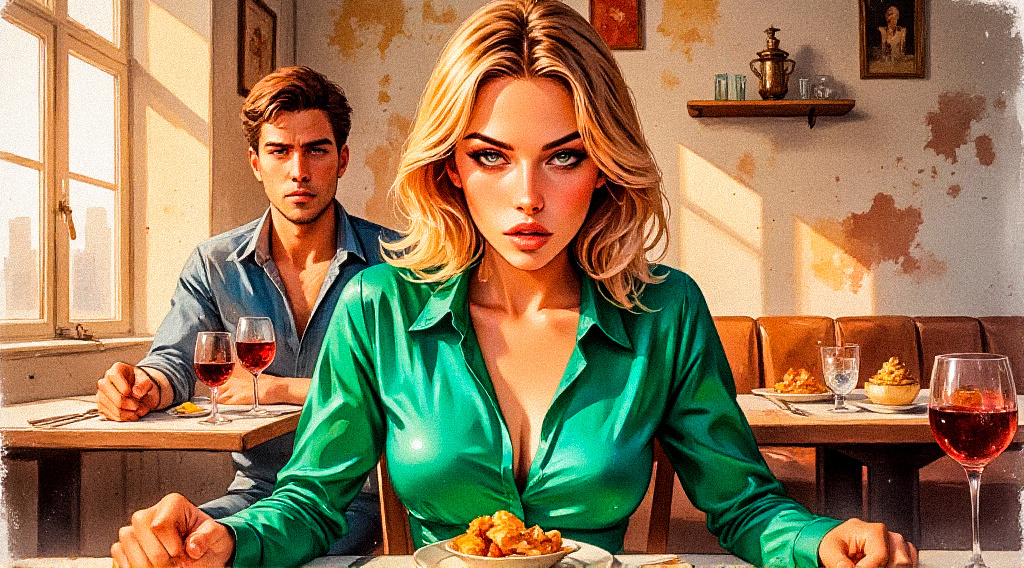 Дмитрий отвёл взгляд, его плечи ссутулились, будто на них разом обрушилась вся тяжесть их десятилетнего брака. В модном ресторане играла тихая музыка, звенели бокалы, кто-то смеялся за соседним столиком, а между ними разрасталась знакомая пропасть.
