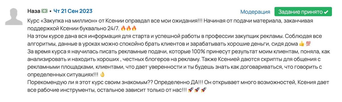 "Спасибо практике на курсе — я поняла, как анализировать результаты сотрудничеств и приводить целевую аудиторию"