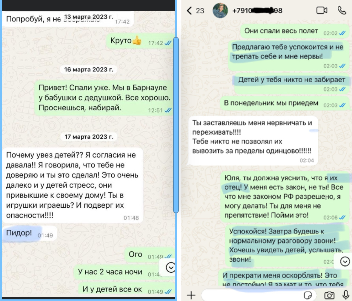 В моем случае женщина, мать детей-искусная актриса. В этом ей нет равных, правда! В интернете она вся такая «белая и пушистая» говорила: я «просила», «умоляла» вернуть детей, предоставить общение, но он блокировал» общение…