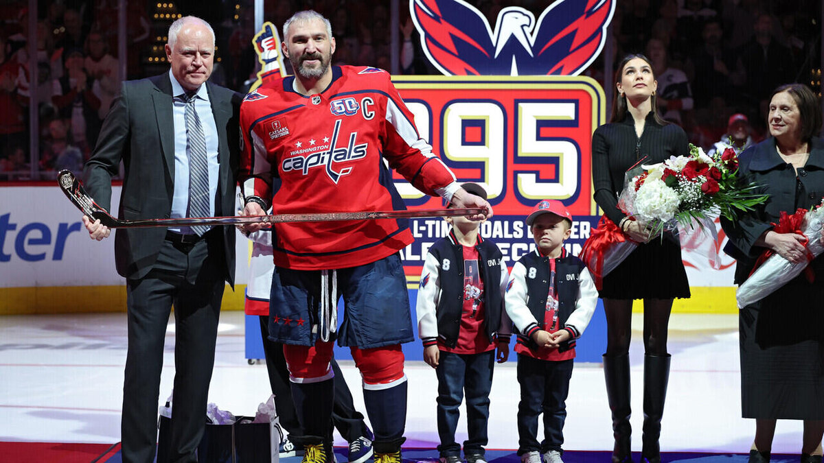 Другим памятным подарком стал портрет, написанный с использованием экипировки спортсмена. Церемония по случаю рекорда Овечкина прошла перед матчем с «Каролиной Харрикейнз». Приглашение на мероприятие получили: семья хоккеиста, владелец «Вашингтона» Тед Леонсис и президент клуба по хоккейным операциям Брайан Маклеллан. Маме и супруге Овечкина организаторы также вручили подарки – букеты цветов и часы. Сыновья хоккеиста получили детские золотые клюшки. Комментатор домашних матчей «Вашингтона» Джо Бенинати пошутил с детьми, подсказав не играть этими клюшками на улице и «не бить папу по коленям». В матче с «Каролиной» выиграл «Вашингтон» со счетом 5:4.