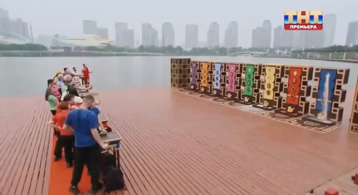 Выступление на китайской сцене. На китайском языке. Нужно повторить текст и жесты, и мимику. Если за 50 минут не справятся. Будут просто стоять 20 штрафных минут и только после этого побегут дальше. Зеленые вышли первые из театра. Осталось добраться только до гонга и зафиксировать своё время. Ужин.