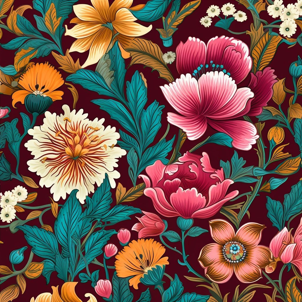 Создано на основе запроса: Indian chintz, plants, mogul flowers, seamless repeating pattern, wallpaper, illustrated, simple, decorative, in