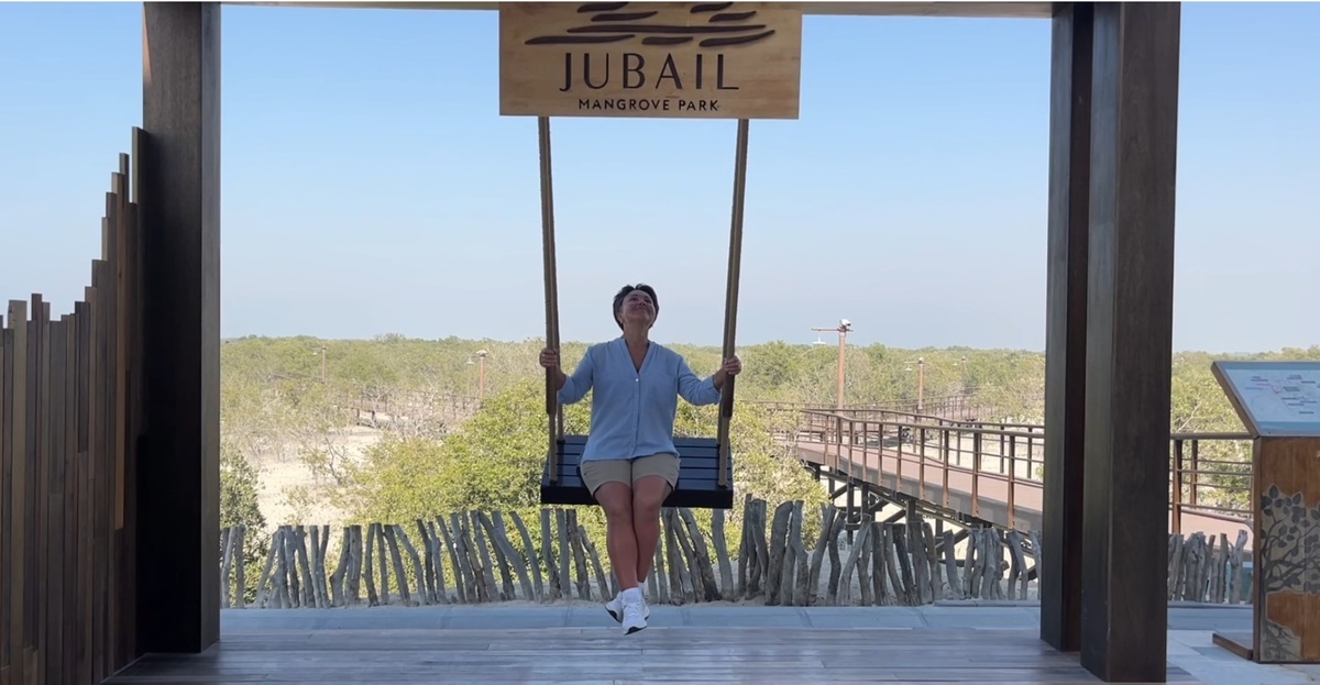 Ехала сюда на такси. Парк находится на острове Jubаil , и по прибытии на остров, таксист, кажется, растерялся, не смог сразу выйти на нужный поворот, плутал минут 10-15. На улице ни единой живой души…, жара +35, духота, ослепительно белый песок и очень сухой воздух… На радость нам обоим на горизонте показался местный рабочий, таксист остановился и попросил помощи, тот нас быстро сориентировал (видимо, мы не первые заблудившиеся!), и вот он, заветный указатель к мангровым зарослям Джубайль, мы вышли на нужный поворот…