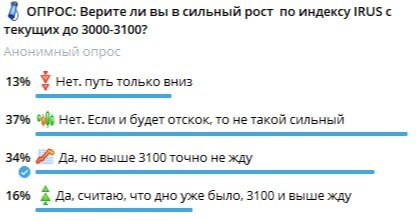 🎤 На прошлой неделе было 7 опросов! Проверим, кто оказался Вангой: 1️⃣ Опрос про ожидания по Индексу Мосбиржи! Неделю закрыли на уровне 2840, сделав за неделю +91 пункт! Большинство (45%) ожидали индекс в диапазон 2850-3000, я в их числе! Но оказались правы 22%, которые ждали индекс ниже 2850! Ванги! 16% ждали, что рынок пойдет выше 3100, а 6% считали, что Трамп=Памп. 11% были настроены пессимистично к текущей ситуации, ожидая, что дно №3 пойдет под распродажу. 2️⃣Опрос по паре юань-рубль! Юань-рубль закрылся на уровне 11,25, а это значит, что всего 14% - Ванги! Это был самый НЕпопулярный ответ! 46% ждали боковик 11,64-12,12. И суммарно 40% ждали выше 12,12! 3️⃣Опрос про поведение на рынке в понедельник! Понедельник начинался негативно и падение продолжалось до 12 часов. Опрос был проведен в 10:54, чтобы узнать поведение участников рынка. 48% покупали рынок! Если они держат позиции до сих пор, то в хорошем плюсе! 47% сидели без движений. 5% , продавали свои позиции на этом проливе.