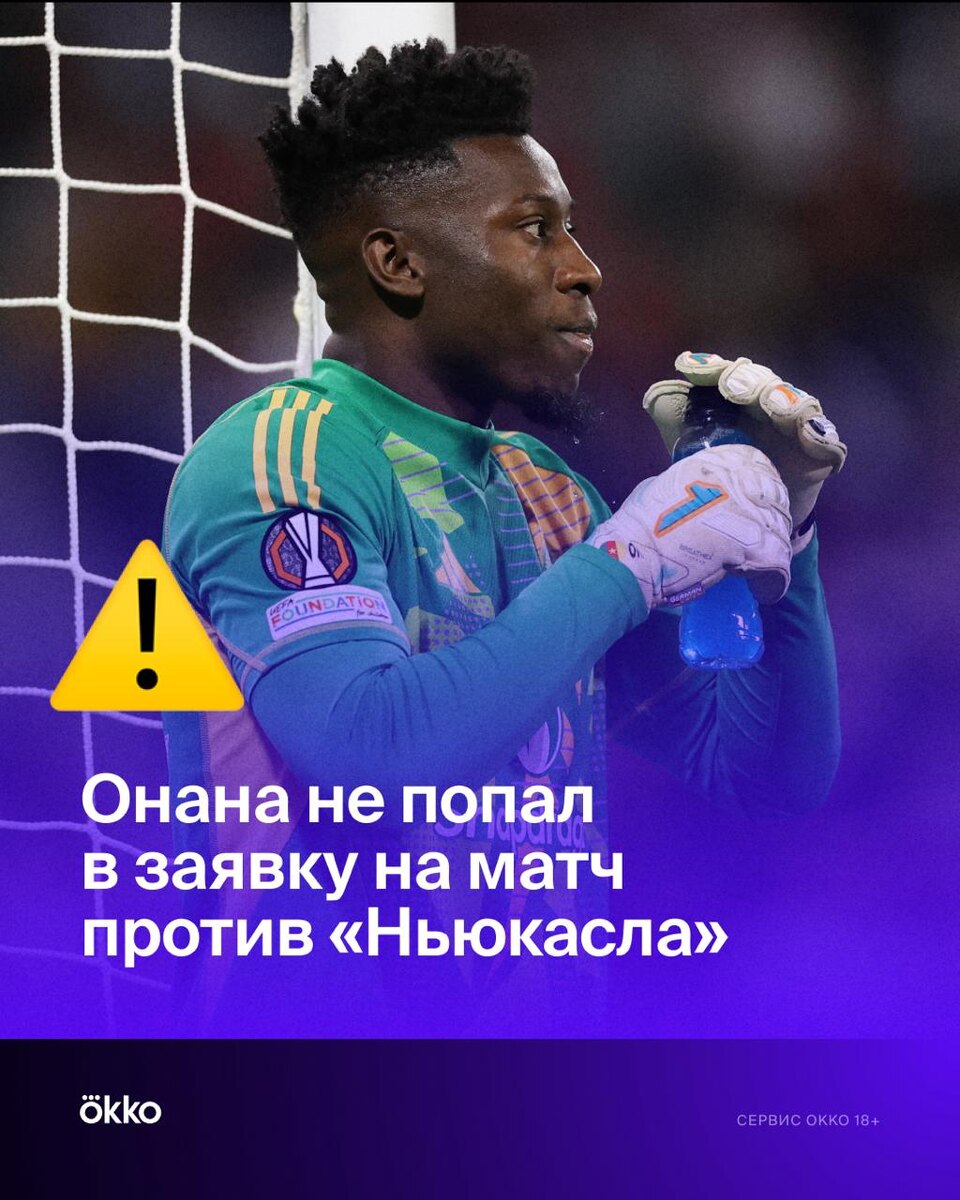 В ответ на пост Онана не сыграет с «Ньюкаслом» после провального матча ЛЕ 🤯 The Sun пишет, что некоторые игроки «МЮ» не хотят видеть Андре в старте. Тучи в Манчестере сгущаются ⛈