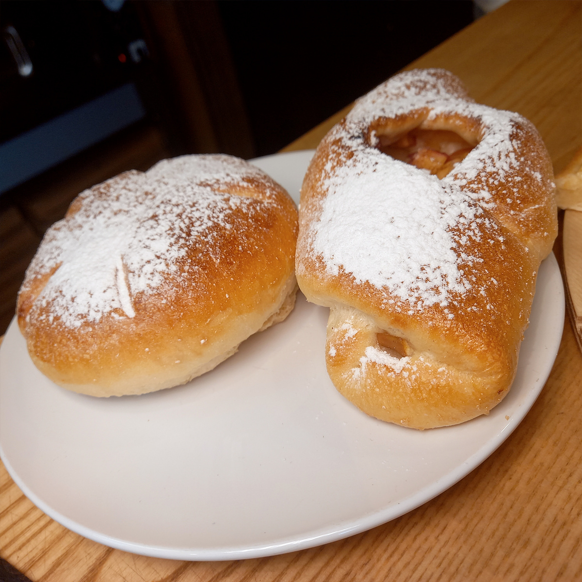 Малиновая пышечка и булочка с яблоком, посыпанные пудрой! Мягчайшие и воздушные!