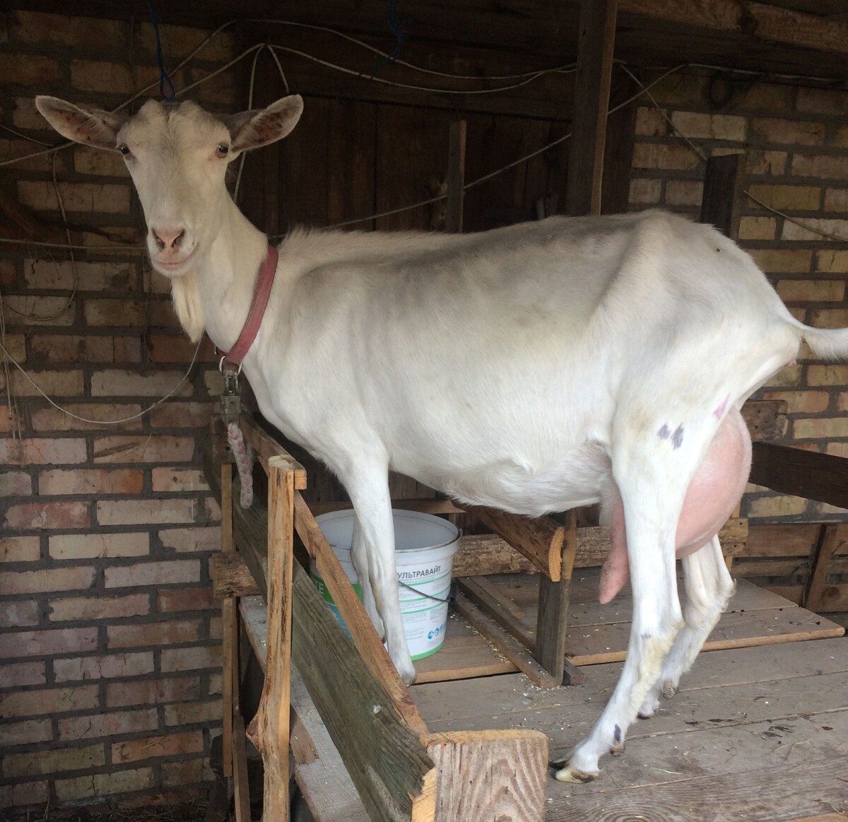 После долгих проб и ошибок нашла наконец-то подходящее питание для своей козы,повысив при этом удой на 700-800 мл зимой на сухостое. Сразу оговорюсь,что это не для всех и у каждого свой подход к своим животным. Знаю,что много критики можно получить от бывалых козоводов,НО!,повторюсь,это лично моё(для себя) "открытие",а брать на заметку или нет,это дело каждого. Так как я занимаюсь приготовлением сыра на заказ,естественно мне хочется получать побольше молока для своих и покупательских нужд. Сыворотки при этом остаётся достаточное количество для того,чтобы подкармливать ею домашнюю птицу и теперь ещё козу. Так просто коза сыворотку пить не хочет,но такой ценный продукт мимо неё пропускать не хочется. Поэтому я решила варить ей кашу на этой сыворотке,а крупа перловая и никакая другая не подошла по всем показаниям. Распариваю пачку перловки с овощными,фруктовыми остатками(кроме банановых шкурок,их я даю в сыром виде) в сыворотке,делю пополам,к каше добавляю ковш(700 мл) ячменя,перемешива