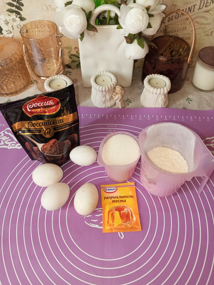 Осторожно соединить , добавить какао и муку с разрыхлителем
