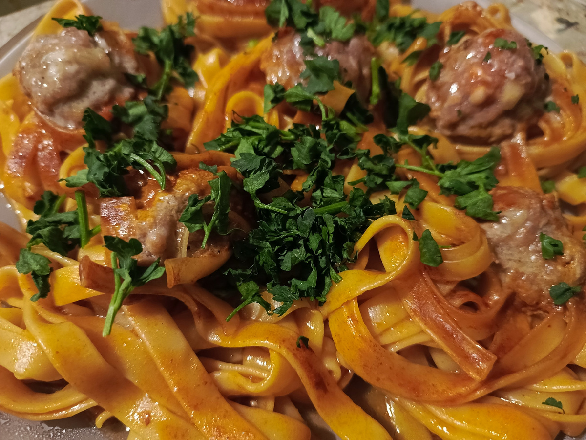 Далее выкладываем в полученный соус гнезда с фаршем и тушим до готовности.