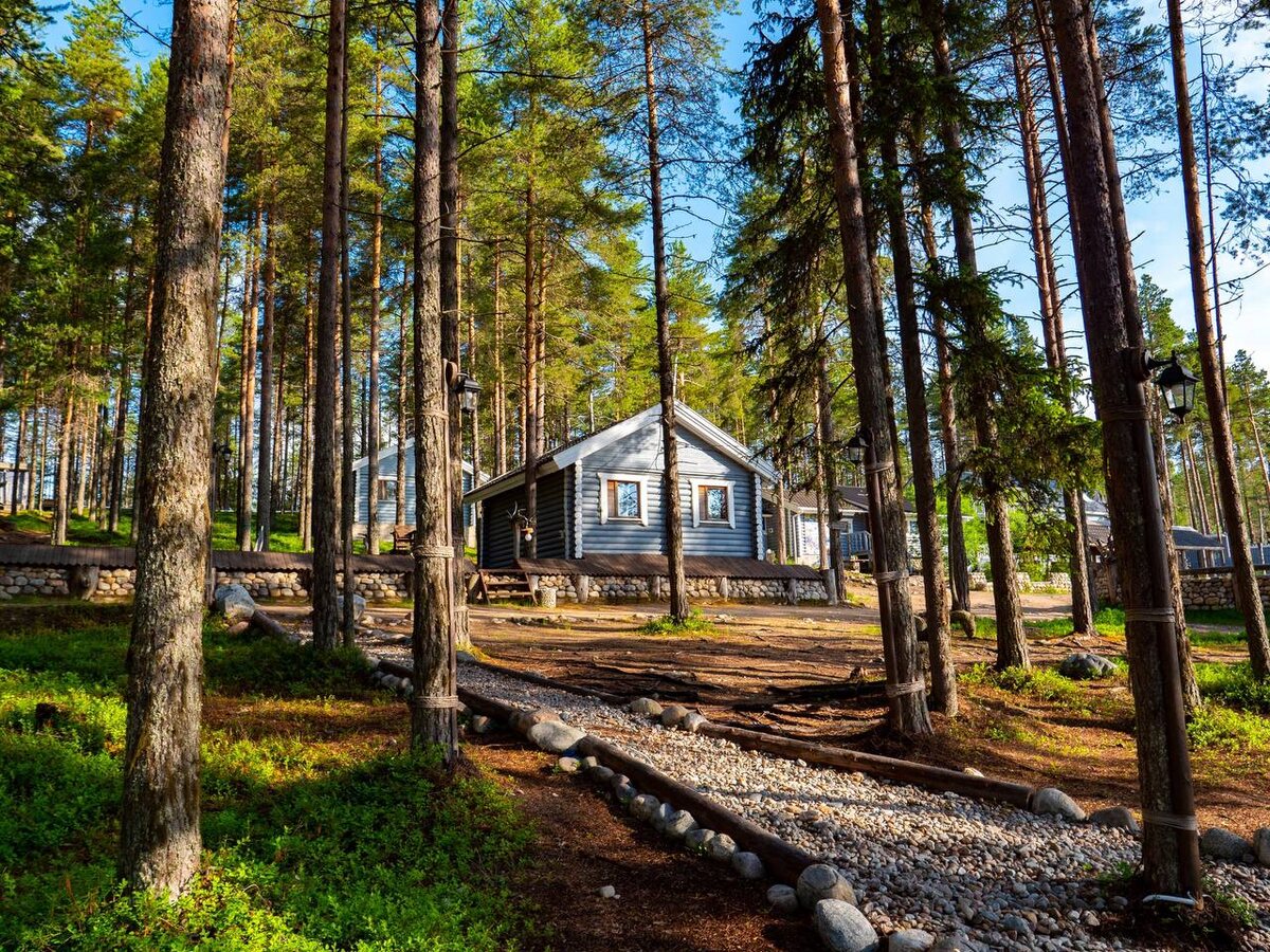 В каждом номере 2 кровати, тумбочки, место для одежды, стол, стулья, телевизор. Вся мебель изготовлена вручную из северо-карельской сосны.