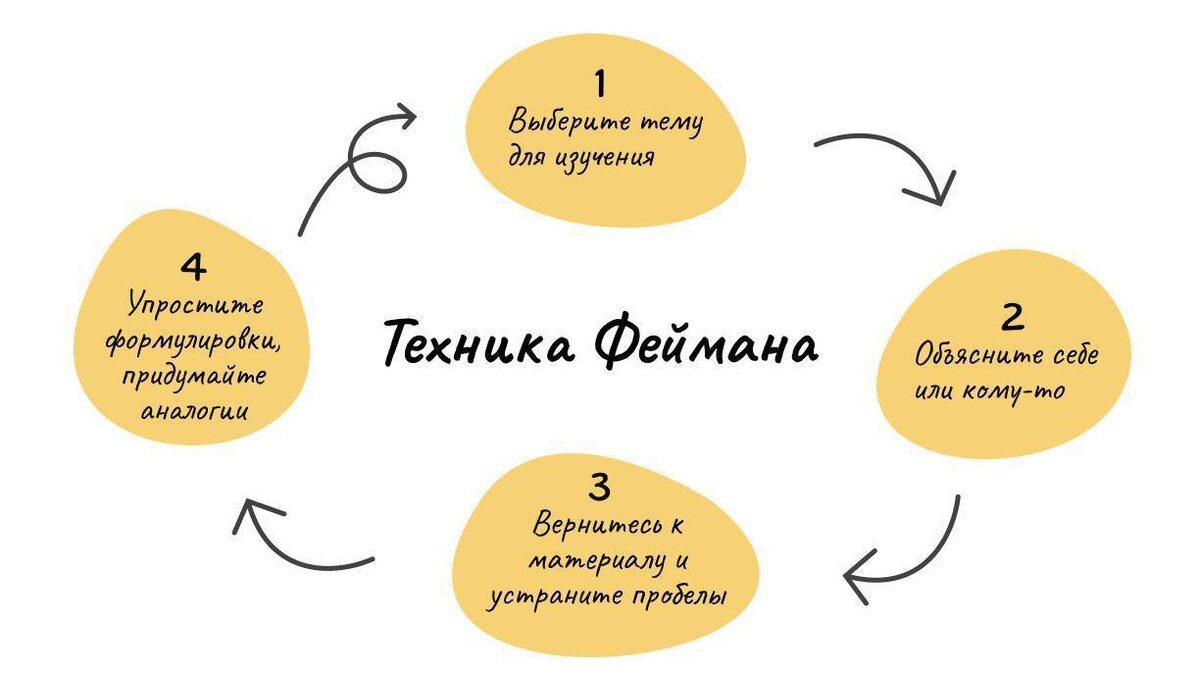 Недавно наткнулся на теорию Ричарда Фейнмана про изучение чего угодно. И мне показалось, что она пересекается с множеством лайфхаков и других теорий (в том же Learning how to learn это было), но более лаконично доносит саму суть. Смысл в том, что мы часто преувеличиваем свои знания. Думаем, что разбираемся в теме, потому что когда о ней слышали, но зайти дальше общих фраз в объяснении не сможем. Например, когда закончил «Бюро Горбунова», я считал себя очень сильным дизайнером. «Сейчас я научу их нормально дизайн делать» — с такими мыслями пришел на стажировку в Яндекс. Поработав год, понял, как же мало я знал о реальных процессах и продуктах. Да я и до сих пор считаю, что многого не знаю. Техника Фейнмана как раз помогает с этим бороться. Сам ученый выступал за то, чтобы обучение было активным процессом с чередой проб и ошибок, а не тупым заучиванием. Концепцию он свел к четырем последовательным шагам: 1. Выберите тему и начните ее изучение с общих понятий. Чтобы не закапываться сразу,
