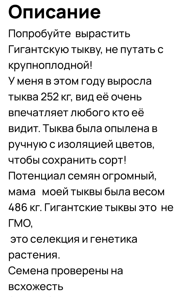 Привет, друзья! Вчера совершенно случайно по пути на работу, пока меня вез ДМ на машине, на "Авито" увидела объявление о продаже семян гигантской тыквы. Захотелось купить, тем более женщина-продавец живёт в частном доме недалеко от моей городской квартиры. Фото гигантской тыквы просто потрясающие! Я списалась с продавцом, договорилась. ДМ отвёз меня на работу и сгонял за семенами. Потом отчитался фото отчётом. Ещё у этого продавца были семена гигантского подсолнечника, и я попросила на сдачу с 300 рублей положить несколько семянок.🙂 (пара семян тыквы же 270 стоят). И на самом деле я получила не только два семечка тыквы за 270 рублей, но и 4 штуки подсолнечника на сдачу в 30 рублей. Вот так я сиара обладательницей 6-ти семян за 300 рублей. Вот два покупных семечка тыквы и одно мое. Разницу видно сразу. Инструкция к семенам прилагалась. Сегодня воскресенье, 13 апреля и я поставила все 6 семянок проращивать. Положила в пластиковую коробочку влажные ватные диски, на них с