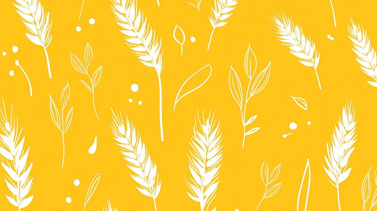 Создано на основе запроса: flat graphic design, yellow background with white wheat and grain patterns, minimalistic style, clean and elegant