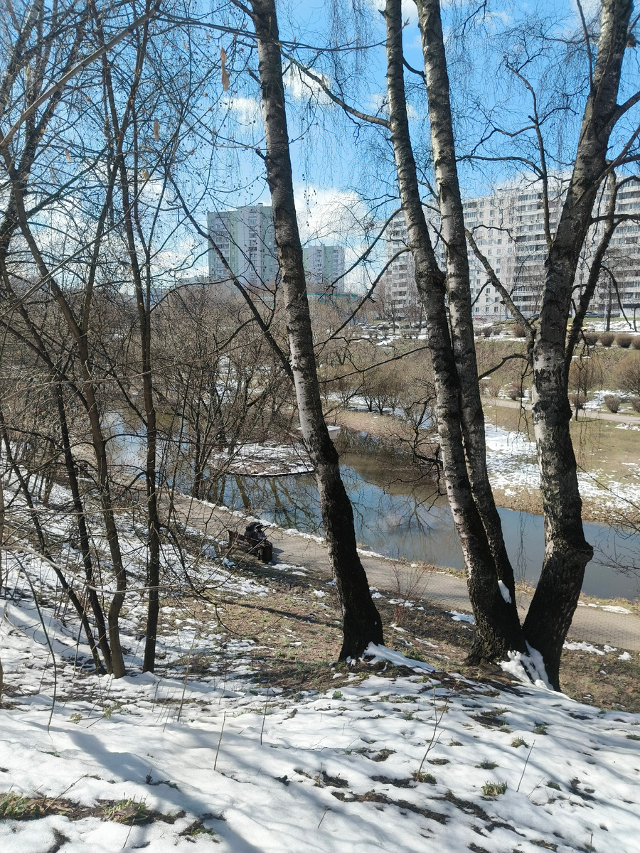 Кажется,весна пришла в Москву Привет,дорогой читатель🌹. Надеемся,этот день будет солнечным и для тебя ). Мы сегодня ходили в храм недалеко от нашего дома и конечно же не могли упустить возможность просто прогуляться по весеннему московскому парку 👍. ВЕРБНОЕ ВОСКРЕСЕНЬЕ ,большой праздник для всех нас . Так приятно было на улице.Еще не растаявший белый снег и молодая травка, пробившая себе дорогу с прошлой недавней оттепели . Замечательное чувство предстоящей теплой весны,одновременное сожаление о уходящей почти безснежной зимы ....❄️☃️. По нашим наблюдениям ,в основном в московских парках сейчас гуляют в большинстве пожилые люди компаниями и в одиночку . Бабули с смешными малюсенькими собачками неопределенных пород 😁. И тут же в парке стоит небольшой уютный храм Нам очень нравится это место,мы тут были уже несколько раз и в прошлом году святили кулич ☝️😊. Строение похоже скорее на сказочный русский терем из больших бревен Тут же на земле,а не на колокольне расположены колокола