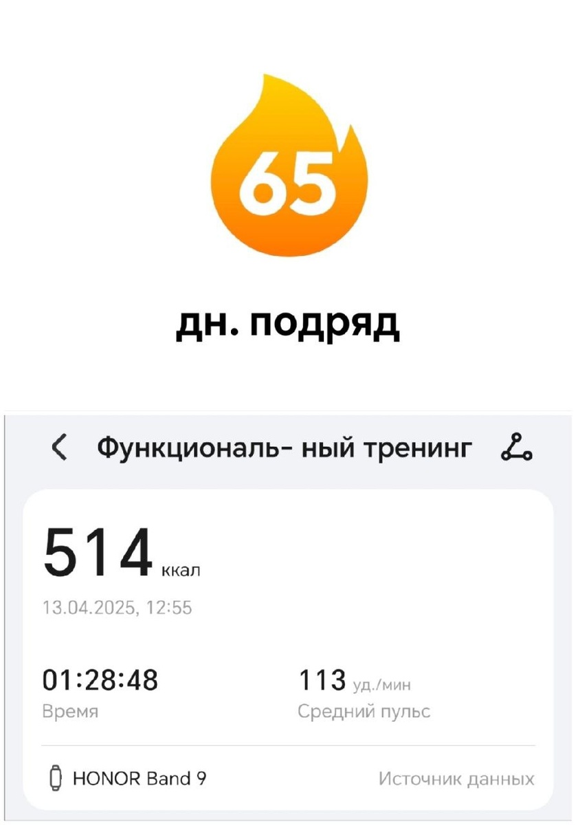 🏋️♂️ Упражнения. День 65. 🗓 13.04.25 💪 День похудения: 95 ⏱ 01:28:48 🏄♂️ 514 ккал 💪 Вот это я дал зарядку конечно! 💡 Скрины с черным фоном, это новое приложение, надо полазить в настройках, может там есть светлая тема, а то плохо видно темные скрины. 😃 Но зато там есть хороший комплекс заминки после упражнений и размвнка тоже там хорошая, буду теперь делать их перед всеми упражнениями! 🤔 В целом 500 ккал это отличная Зарядка я считаю, только вопрос, где взять 2 часа (1.5 часа упражнения + душ) утром почти каждый день... ✍️ Присылайте в комментарии свои активности за день! #жжем_калории 😎 Roman Legas | Life