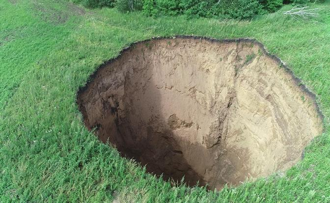 - В основном карстовые воронки появляются из-за естественных факторов. Скажем, ливни или засуха нарушают уровень грунтовых вод. Влага смещает рыхлый грунт, покрывающий отверстия в известняке. И возникает дыра в земле. Порой весьма значительных размеров.