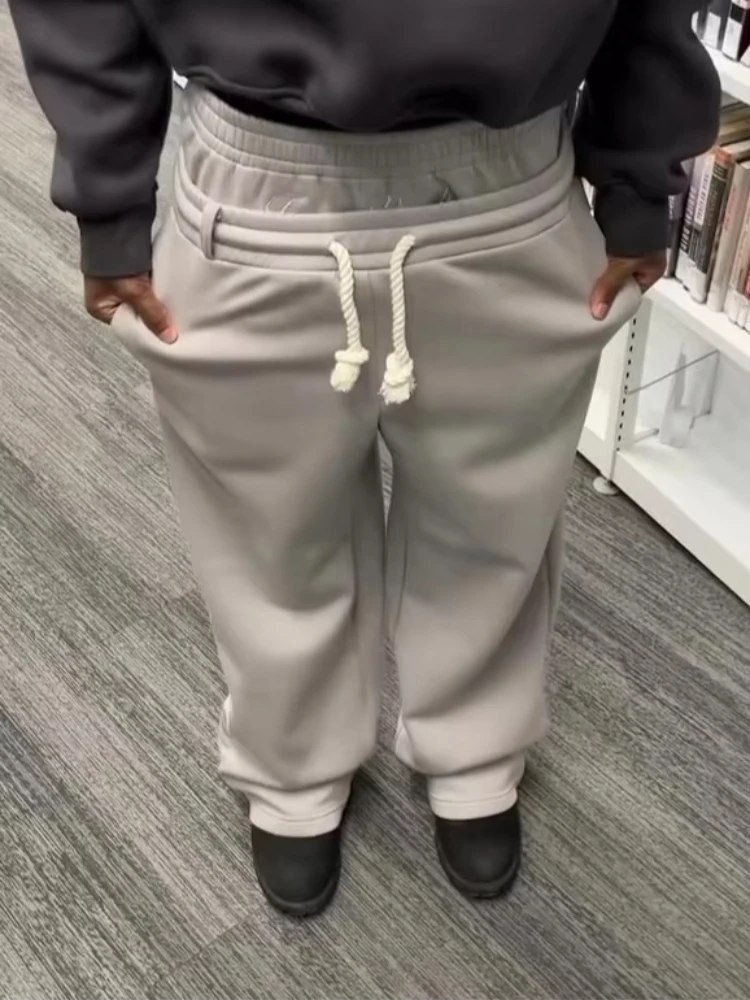 Модные брюки унисекс, искусственные брюки из двух предметов, весенние брюки с двойной талией 2024, свободные брюки на шнурке, брюки с