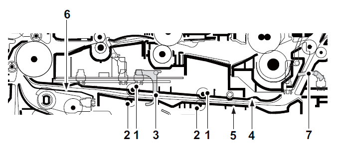 - Нижняя направляющая для двусторонней печати (DU lower guide): Направляющая, обеспечивающая корректное движение бумаги в нижней части транспортировочного пути дуплекса.