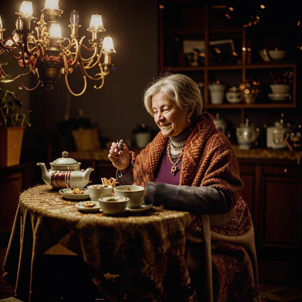 Я повернулась на голос и увидела женщину, она сидела в кресле за круглым столом, покрытым дорогой скатертью. Перед ней стоял заварной чайник, вазочка с печеньем, что-то ещё на тарелке, я сразу не рассмотрела. Рядом суетилась молодая женщина, постарше меня.