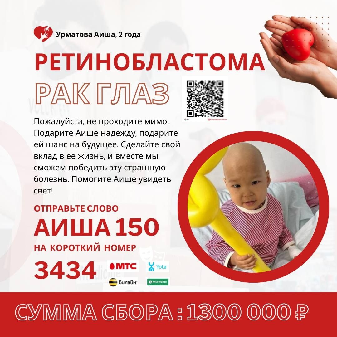 У Аише рак глаз – это не просто слова, это крик о помощи, эхо отчаяния, разрывающее тишину равнодушия. В ее маленьком мире, где раньше сияли краски детства, сейчас сгущается непроглядная тьма. Каждый день – это борьба, сражение за лучик надежды, который с каждым прожитым моментом становится все тусклее. Но мы верим, что чудо возможно. Мы верим в силу добра, в сострадание, которое живет в сердцах неравнодушных людей. Аише всего лишь ребенок, она заслуживает увидеть мир во всем его великолепии, почувствовать тепло солнца на коже, смеяться и радоваться жизни. Пожалуйста, не оставайтесь в стороне. Любая помощь, даже самая скромная, может стать решающей в этой отчаянной битве. Подарите Аише шанс на выздоровление, шанс на счастливое будущее. Сделайте свой вклад в ее жизнь, и вместе мы сможем победить эту страшную болезнь. Умоляем, помогите!