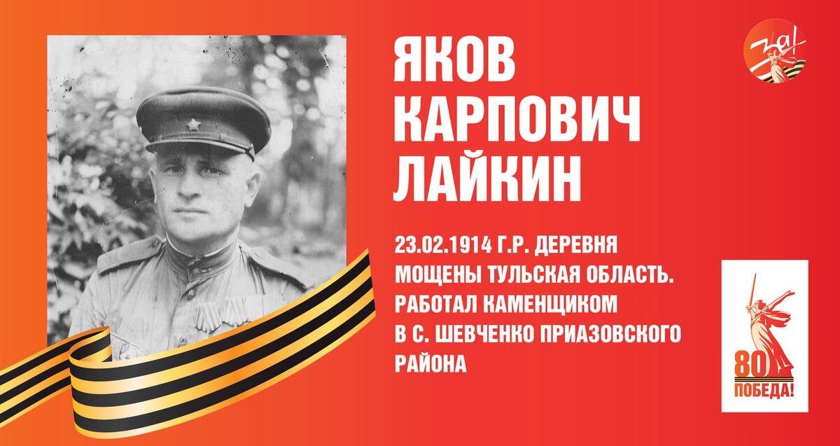 ❤️ Телеканал «За!ТВ» продолжает серию публикаций «Герои Советского Союза, жившие в Запорожской области». Яков Карпович Лайкин — гвардии красноармеец, разведчик взвода пешей разведки 91-го гвардейского стрелкового полка (33-я гвардейская стрелковая дивизия, 43-я армия, 3-й Белорусский фронт). Весной 1944 года в составе своего полка участвовал в боях за освобождение Крыма. За хорошую разведку на подступах к городу Севастополь, за то, что на уличных боях уничтожил пулемётную точку и трёх гитлеровцев, награждён медалью «За отвагу». После прекращения боёв за Крым и короткого отдыха, дивизия была переброшена на 3-й Белорусский фронт. Здесь гвардии красноармеец Лайкин участвовал в Восточно-Прусской операции, в штурме Кёнигсберга. 27 января 1945 года в 12 км северо-восточнее города Кёнигсберг (ныне — Калининград) скрытно проник на окраину населённого пункта. Забросал гранатами крупнокалиберный и ручной пулемёт, 8 немецких солдат, а трёх гитлеровцев взял в плен. Пленные дали ценные сведения о