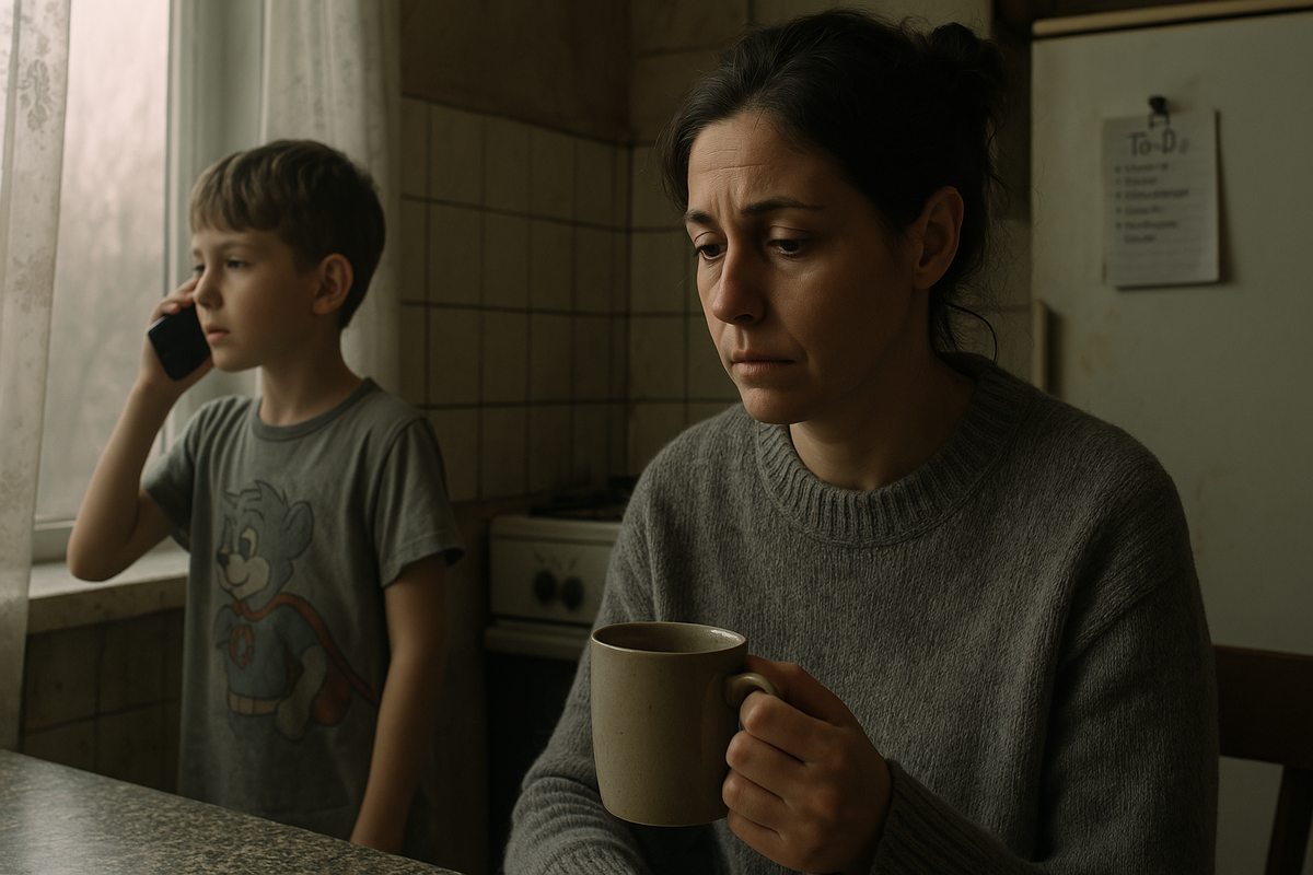 Наталья торопливо варит кофе на старенькой плите, украдкой смотрит на телефон. Ни одного сообщения. «Опять…» Бывший муж Саша давно не платит алименты. Тишина. За последние три месяца — ни одного перевода. Когда-то она рыдала по ночам из-за этой несправедливости, теперь просто глотает горький комок: «Ничего. Справлюсь и сама».