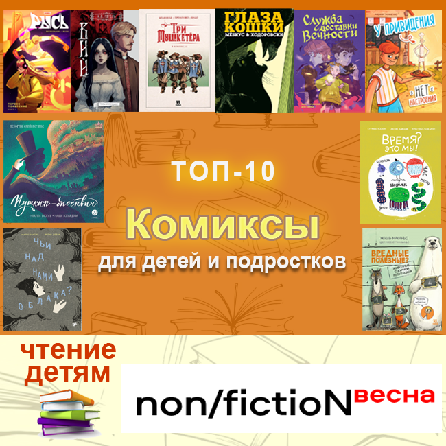 Источник: топ-лист «Литературные произведения для детей, представленные на ярмарке non/fictioN весна»: https://moscowbookfair.ru/literaturnyie-proizvedeniya-dlya-detej-predstavlennyie-na-yarmarke-nonfiction-vesna25/