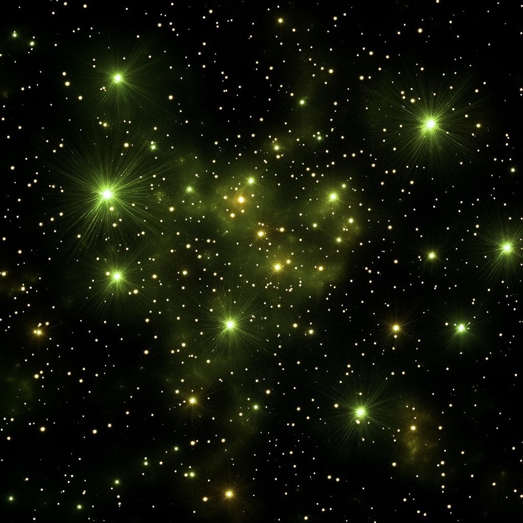 Создано на основе запроса: extremely detailed and realistic, total black background, astral space, 30 bright shining stars, group of magic green shining sparks, green and yellow shining --- Автоперевод: Чрезвычайно подробный и реалистичный, общий черный фон, астральное пространство, 30 ярких сияющих звезд, группа волшебных зеленых сияющих искры, зеленый и желтый сияющий Хорошо вышло? 🤔 https://dzen.ru/id/65c0c65c86e4f837c27b24d7 #ИИ #AI #нейросеть #midjourney #art