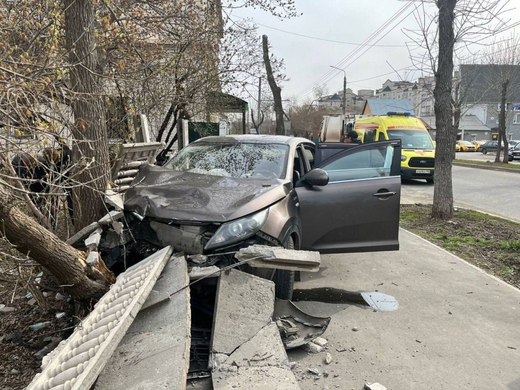 В Оренбурге на улице Комсомольской Kia жестко протаранила забор и дерево