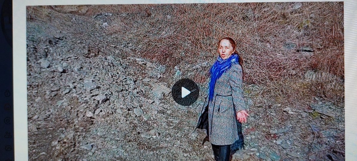 Сейчас у нас на Алтае уже тепло, снег растаял и Оксана на видео стоит у горы, дорогу к которой по приказу главы района уже засыпАли кучами камней, чтобы местные даже не могли ездить туда и снимать. Вот фото ниже, примерно недели две назад, как раз еще по снегу. И Оксана делает видео как раз под этой горой.
