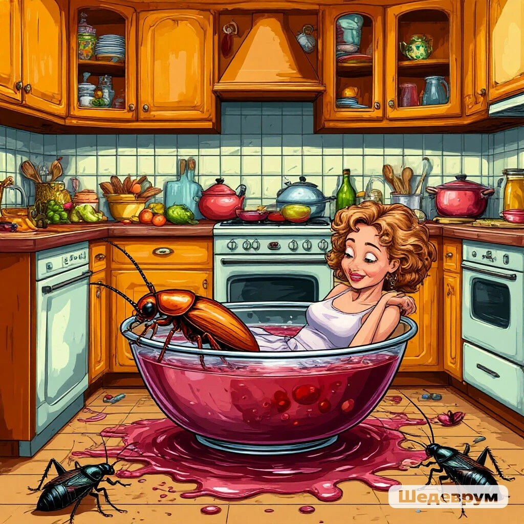 В маленьком городке, в котором всегда было весело и шумно, жила-была Людмила Аристарховна. Она была не только замечательной поварихой, но и обладала редким талантом придумывать самые сумасшедшие рецепты. Все в округе знали, что её яблочный компот — это нечто невероятное! Каждый год Людмила Аристарховна устраивала осенний праздник компота, на который приходили даже самые дальние соседи. Однажды, готовя свой знаменитый компот, Людмила Аристарховна решила добавить в него немного специй и фруктов, чтобы порадовать своих гостей. Она нарезала яблоки, перезрелые груши и даже чуть-чуть малины. Но в самый ответственный момент, когда компот уже закипал на плите, в кухню залетел таракан по имени Фёдор. Он был не простым тараканом, а настоящим гурманом, который только и думал о еде. Фёдор, как истинный ценитель, остановился, уставившись на варящийся компот. «Что за аромат! — подумал он. — Если я удачно проскочу, то, возможно, смогу попробовать этот шедевр!». И он начал выстраивать хитроумный пл