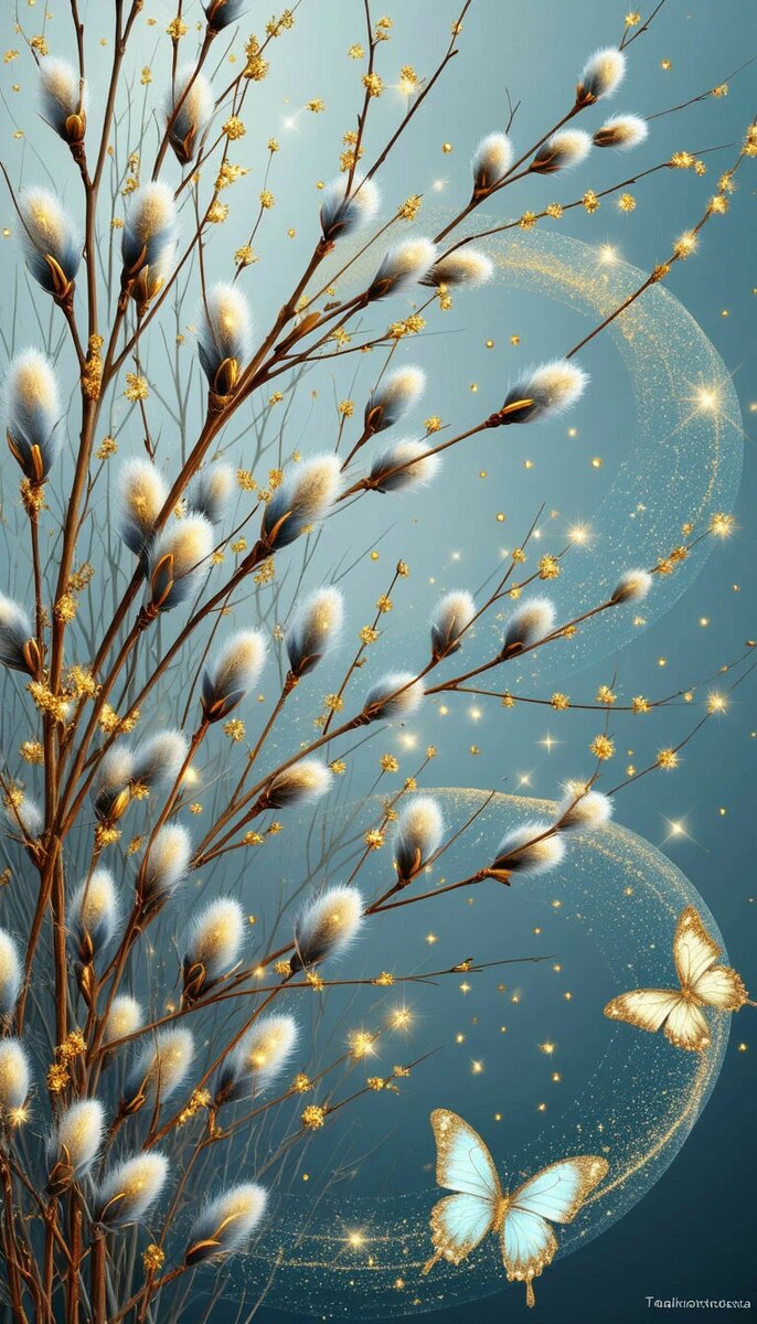 Вербное воскресенье — это один из самых светлых и радостных праздников в христианском календаре. Он символизирует торжественный вход Иисуса Христа в Иерусалим, встреченный народом с ветвями пальм и верб. В этот день верующие освящают вербы, которые считаются символом весны, обновления и духовного очищения. Чтобы разделить радость праздника с близкими, друзьями или коллегами, можно отправить красивую открытку с пожеланиями мира, добра и благополучия. А если вы хотите сделать это бесплатно и при этом оригинально, то мои идеи и подборка открыток точно вам пригодятся! Подборка красивых открыток с Вербным воскресеньем Чтобы упростить ваш выбор, нарисовала несколько примеров открыток, которые можно использовать: Классическая открытка с вербой На фоне нежно-зеленого поля изображены ветви вербы с пушистыми сережками. В центре надпись: «Христос воскресе!». Религиозная открытка