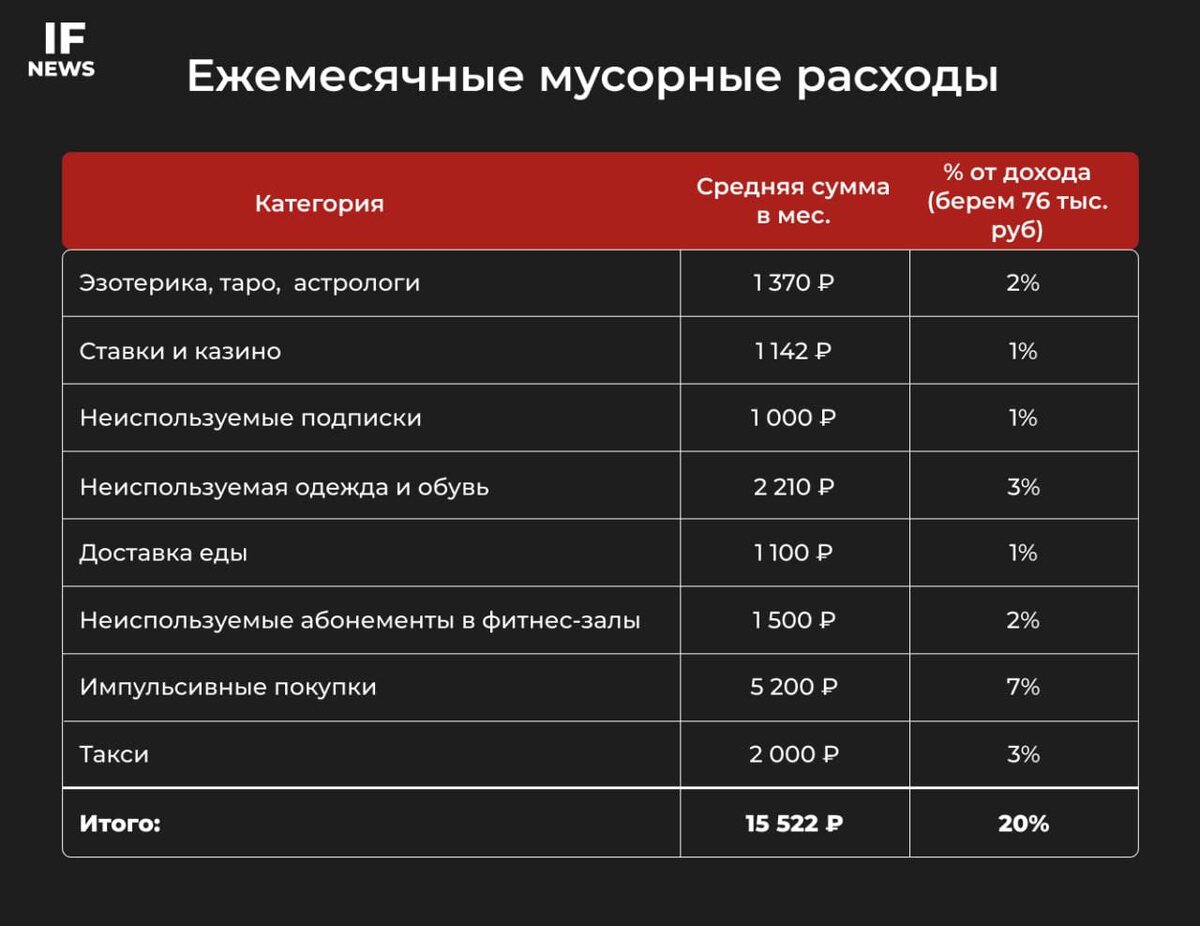 ΡΡΠ°Ρ Β«Π½Π° Π²Π΅ΡΠ΅ΡΒ». ΠΡ ΠΏΡΠΎΠ²Π΅Π»ΠΈ Π°Π½Π°Π»ΠΈΠ· ΠΏΠΎΡΡΠ΅Π±ΠΈΡΠ΅Π»ΡΡΠΊΠΎΠΉ ΠΊΠΎΡΠ·ΠΈΠ½Ρ ΡΠΎΡΡΠΈΡΠ½ ΠΈ ΠΏΠΎΠΊΠ°ΠΆΠ΅ΠΌ Π²Π°ΠΌ, ΠΊΡΠ΄Π° ΠΏΠΎΡΡΠΎΡΠ½Π½ΠΎ ΡΡΠ΅ΠΊΠ°ΡΡ Π΄Π΅Π½ΡΠ³ΠΈ. ΠΠ° ΡΡΠ΅Π΄Π½ΡΡ Π·Π°ΡΠΏΠ»Π°ΡΡ ΠΌΡ Π²Π·ΡΠ»ΠΈ 76,5 ΡΡΡ. ΡΡΠ±Π»Π΅ΠΉ ΠΏΠΎ Π ΠΎΡΡΡΠ°ΡΡ: ΠΠ»Π°Π²Π½ΡΠ΅ Π½Π΅Π½ΡΠΆΠ½ΡΠ΅ ΡΡΠ°ΡΡ (% ΠΎΡ Π΄ΠΎΡ
