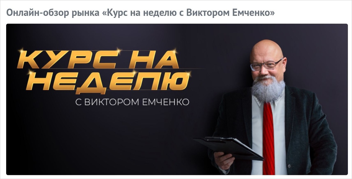 Доброго вечера, коллеги. Напоминаю - сегодня проводим вебинар - обзор. Стартуем в 15:00 UTC (18:00 по Москве, Минску, Киеву. 19:00 по Тбилиси, Баку и Еревану. 20:00 по Ташкенту, Алма-Ате и Душанбе) присоединиться вы можете в любое время, пока идет вебинар. Преимущество посещения - это реальная возможность задать вопросы ведущему, попросить дать оценку торговой ситуации, рассмотреть техническую картину интересующего Вас рынка. Но можно посмотреть и запись. Сначала она появиться на YouTube, а затем и в других сетях. Буду благодарен Вам за лайки, ракеты, и прочие реакции, в первую очередь, конечно, комментарии Хотите получить напоминание на почту - регистрируйтесь на сайте спонсора. Как и всегда вебинар в ZOOM (код 330531) будет сопровождаться прямым эфиром на нашем канале в You Tube. Хорошего начала выходных - пятница, вечер, пора развеяться и повеселиться #вебинар #полезноечтение ______________ 🖥️ Записи обзоров и вебинаров доступны на площадках: 🟣ТГ (чат) 🟣Дзен 🟣RuTube 🟣В