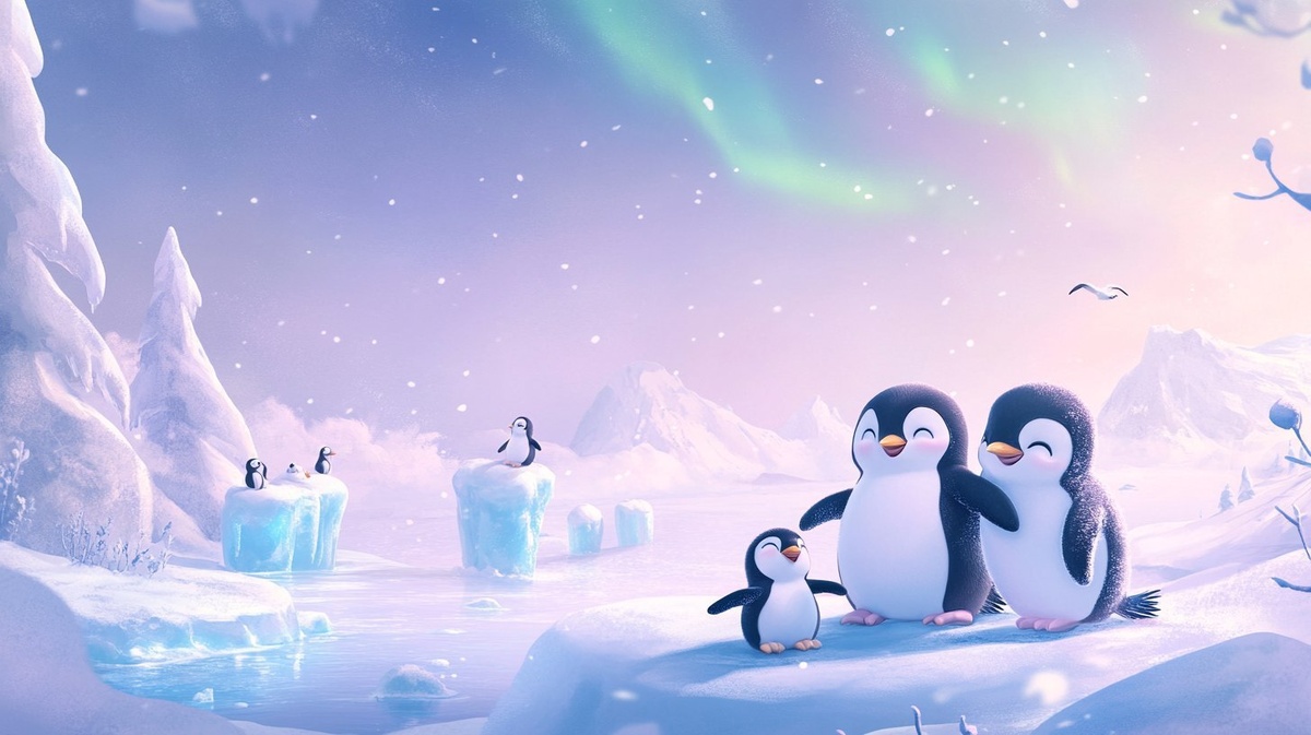 Создано на основе запроса: a snowy pastel cartoon landscape with a family of happy penguins sliding on ice, building snowmen, hugging their baby penguins, icebergs in the distance, aurora in the sky, soft icy colors, very friendly and fun, for kids under 7, no text --- Автоперевод: Снежный пастельный мультипликационный ландшафт с семьей счастливых пингвинов, скользивших по льду, строил снеговиков, обнимая своих маленьких пингвинов, айсберги на расстоянии, Аврора в небе, мягкие ледяные цвета, очень дружелюбные и веселые, для детей до 7 лет, без текста. Как тебе эта генерация? 🤔 https://dzen.ru/id/65c0c65c86e4f837c27b24d7 #ИИ #AI #нейросеть #midjourney #art