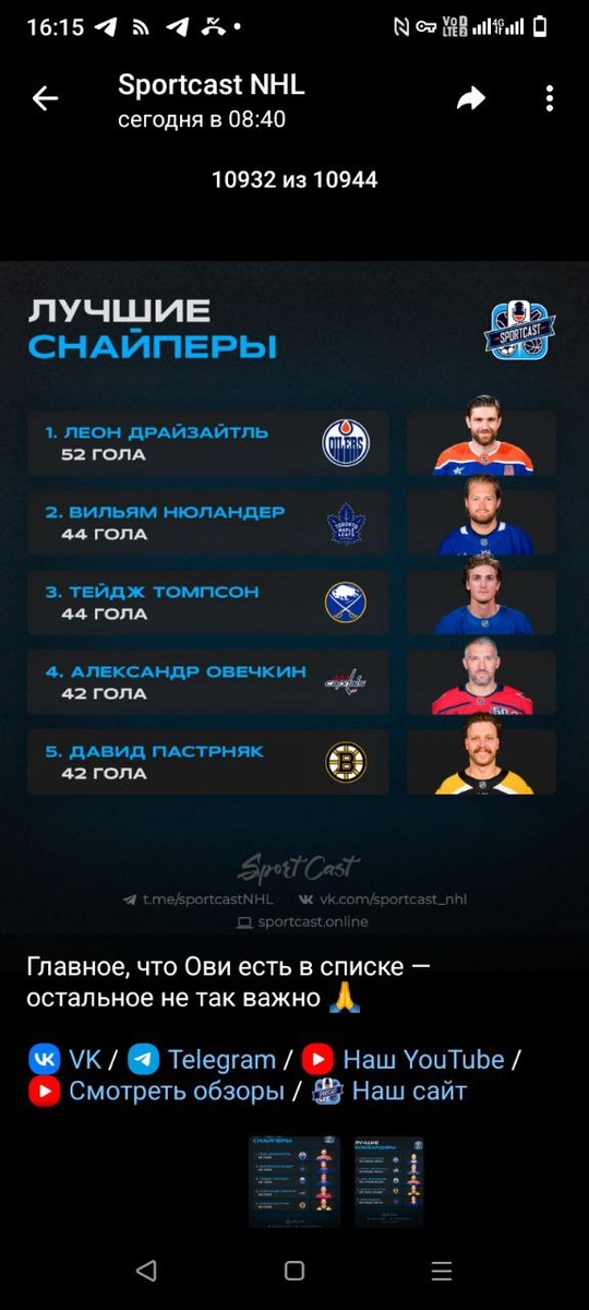 Таблица бомбардиров и снайперов НХЛ