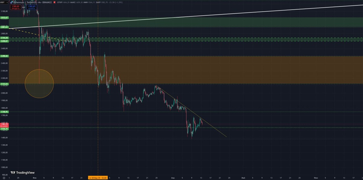 $ETH Достиг цели, но находиться в фазе аккумуляции. На битфайнексе продолжается набор лонг позиции на паре ETHBTC, а это значит эфир ожидает сильный рост относительно биткоина. Локально можем снимать ликвидность в районе 1530$. Глобально ожидаю разворот и поход за главной ликвидностью в районе 4к$. #ETH #crypto #update