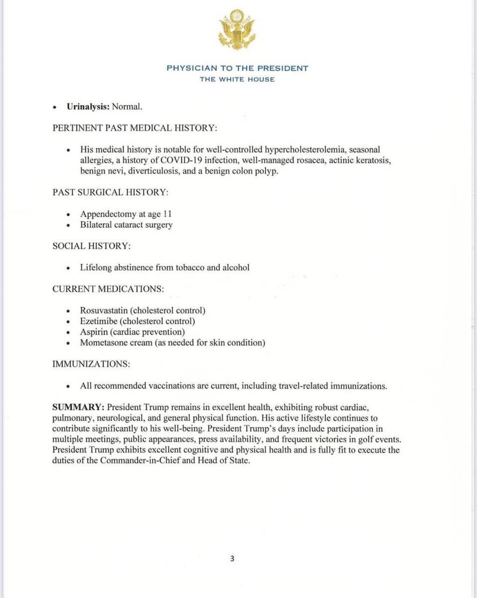 Белый Дом опубликовал результаты медицинского обследования Трампа.