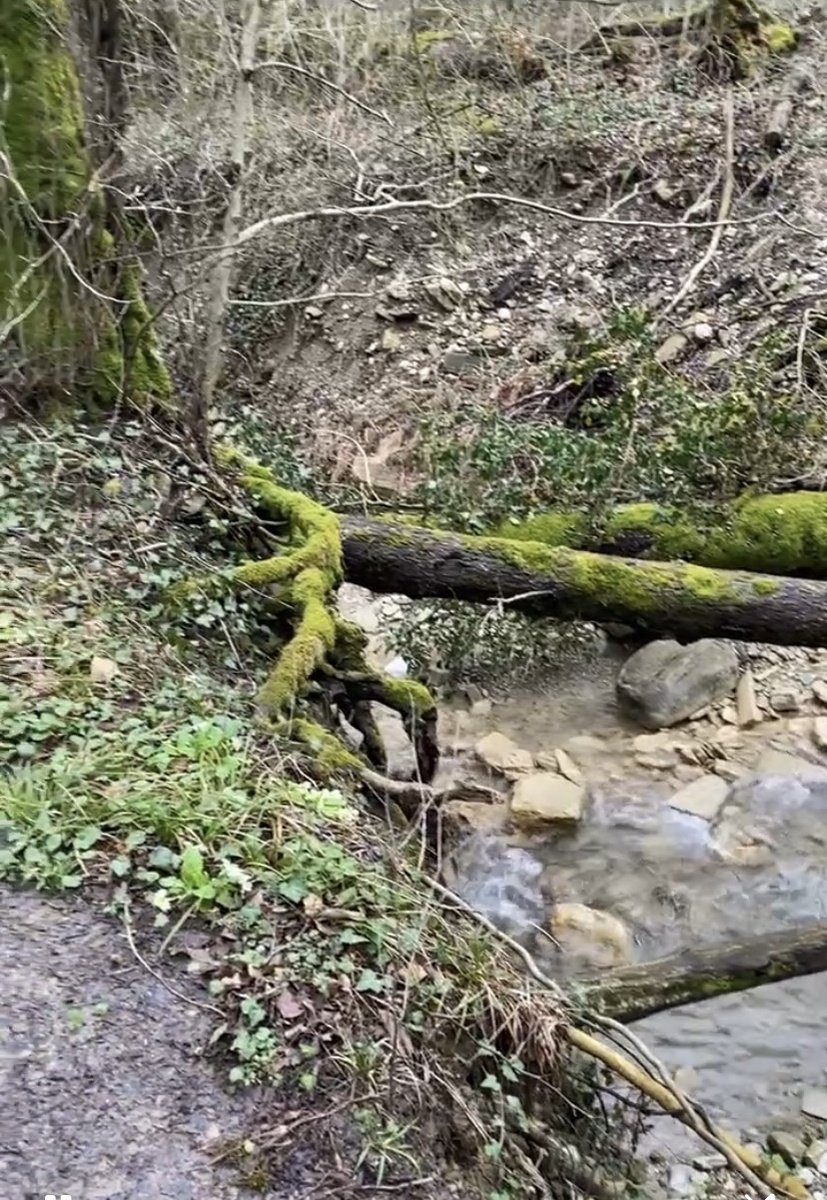 Там, в лесу, есть грот, в который врезался корень дерева — выглядит как фэнтези-декорация. А рядом — источник с минеральной водой. Можно набрать в бутылку или просто попить прямо из фонтанчика. Вода специфическая, но бодрит!