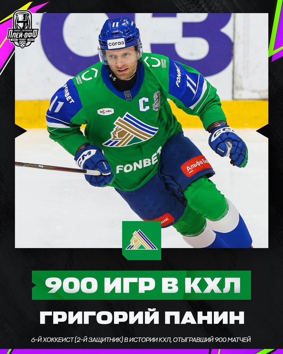 Григорий Панин стал вторым защитником в истории КХЛ, достигшим отметки в 9⃣0⃣0⃣ матчей!