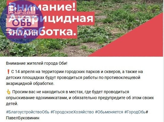 На ресурсах городской администрации вышла информация о грядущей антиклещевой обработке ядами парков и скверов. Рядовое ежегодное событие, если бы не забавные хештеги.