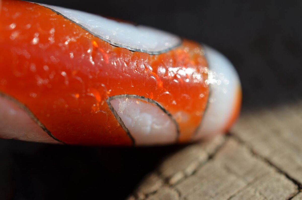 Бусины Дзи в СИЯЮЩЕЙ ДРАКОНЬЕЙ ШКУРЕ - мне периодически попадаются. Они роскошны, обладают устойчивой огненной энергетикой, местами резкой но очень уверенной и однозначно усиливающей смысл пиктограммы на самой ДЗИ.