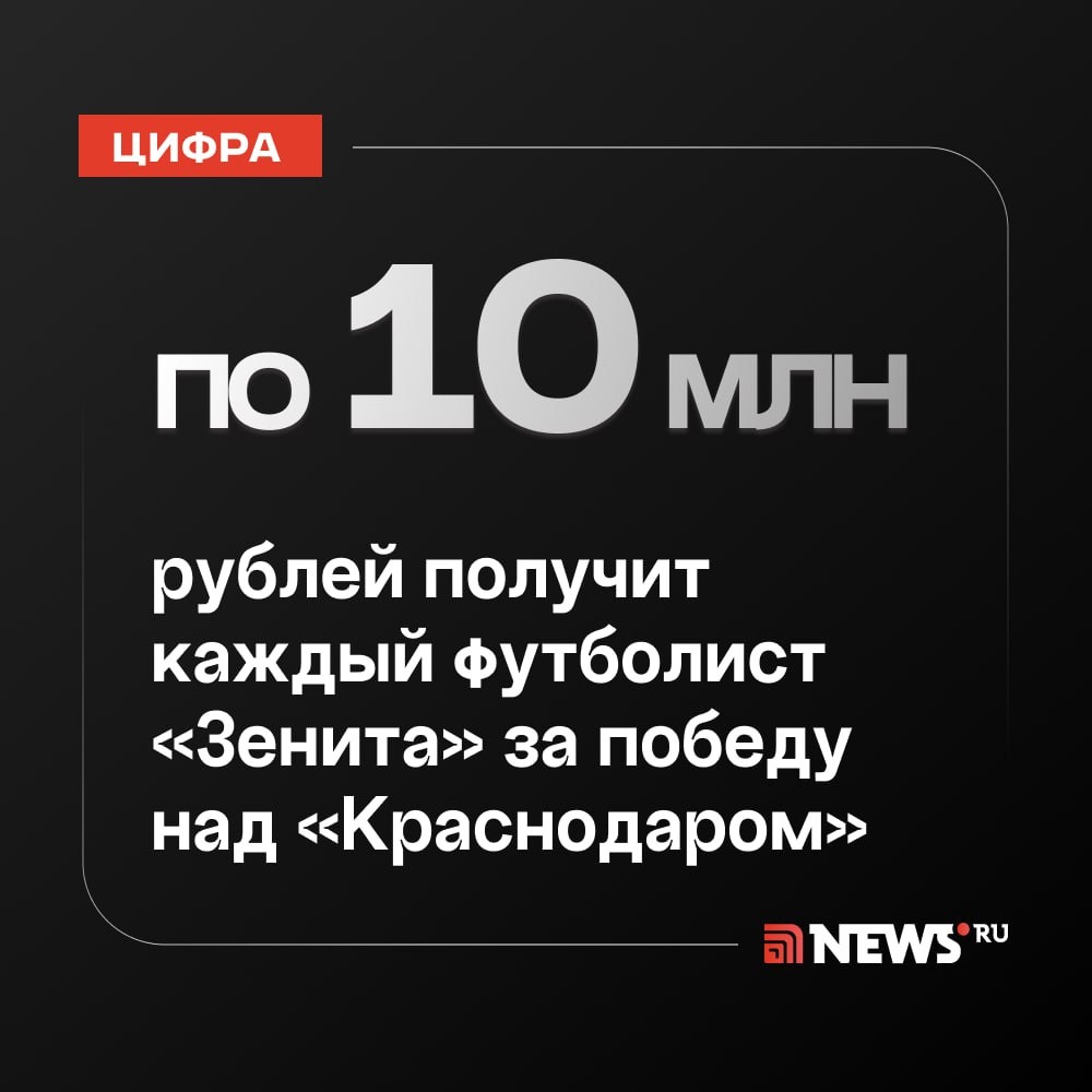 Каждому футболисту «Зенита» пообещали 10 млн рублей за победу над «Краснодаром». Щедрая премия обусловлена тем, что в случае поражения «Зенит» почти полностью потеряет шанс стать чемпионом РФ по футболу. Так как в этом году футбольному клубу исполняется 100 лет, руководство очень хочет, чтобы он стал чемпионом. Об этом пишет Sport24. Матч проходит прямо сейчас в Петербурге. «Зенит» ведет со счетом 2:1. А какую самую большую премию получали вы? ⭕ Подписаться | Прислать новость | Буст