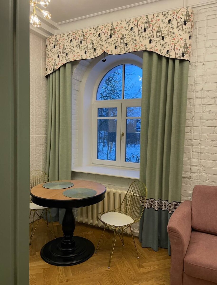 В старинном доме с почти сказочными башенками 🏰и арочными окнами живет одна наша клиентка, которая очень трепетно и вдохновенно относится к своему интерьеру - в том числе и к шторам👌