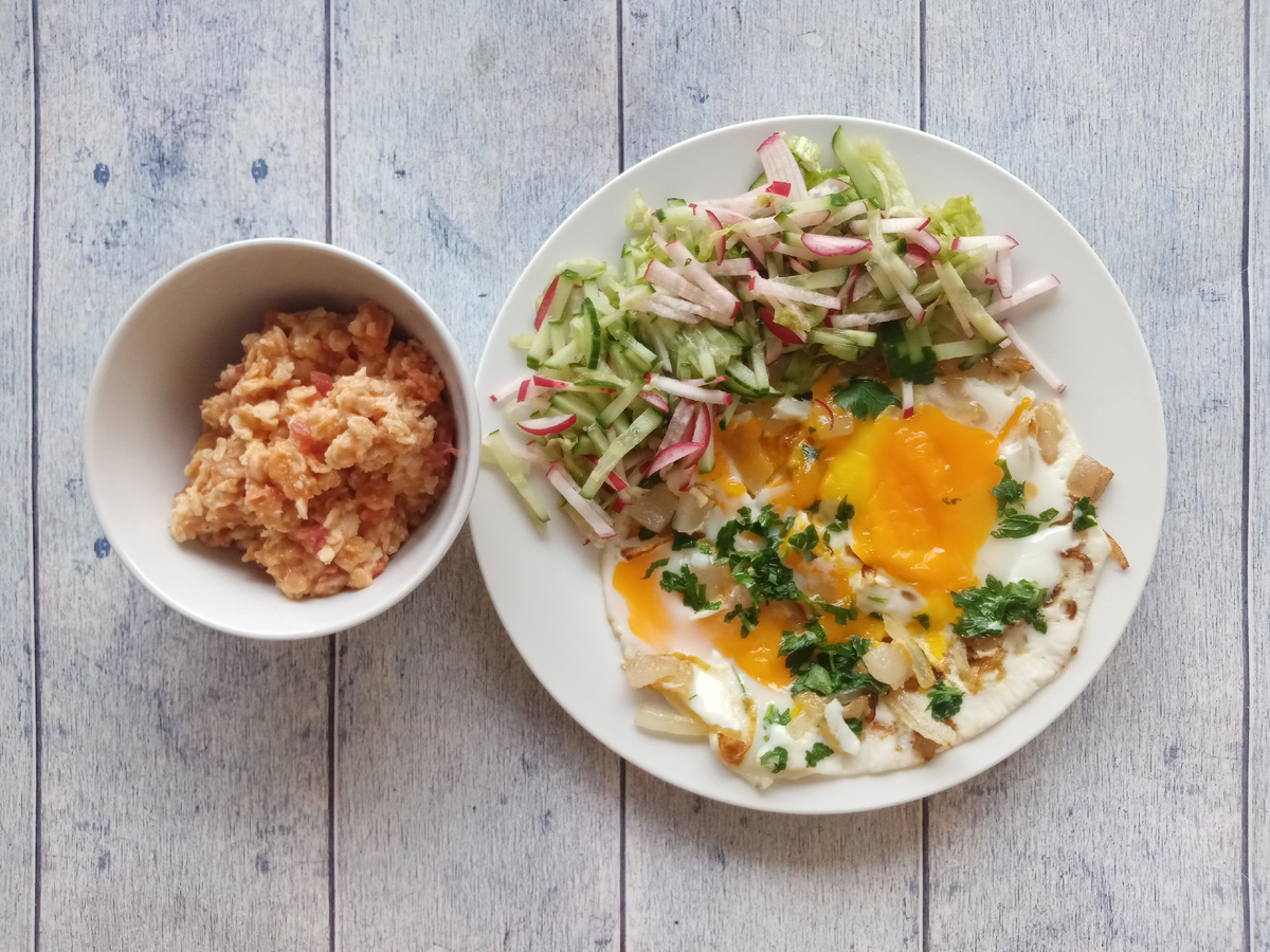 Черепаший ход я освоила в совершенстве. Плавно переползла в следующий похудательный месяц). Приветствую вас. Я — Анна. Худею с веса 130 кг. В основе похудения дефицит калорий и баланс БЖУ, работа с эмоциями и физическая активность. Присоединяйтесь). Вчерашние тарелочки. Завтрак. Яичница с салом, салат и овсянка с томатами. Обед. Гречка с тефтелями и салат. Ужин. Чипсы, творог со сметаной и кефир. Чипсов я захотела в обед. Если бы захотела с утра, то скорректировала бы завтрак — убрала из яичницы сало и добавила тефтельку, тем самым увеличив количество белка и уменьшив количество жира). Поэтому корректировала обед и ужин. КБЖУ. Неделя была активная в плане работы и совсем не активная в плане дополнительной физической нагрузки. Суставы мои опять ведут себя безобразно — то ли весеннее обострение, то ли у организма заканчивается ресурс на таскание тяжестей. Поэтому тренировки и шаги на этой неделе на минималках — решила в кои-то веки включить режим «Аня благоразумная» и поберечься). Средня