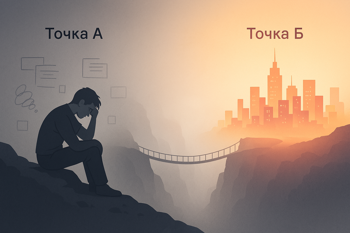 Выгорание и разрыв между иллюзиями и реальностью: точка А и точка Б Одна из самых распространённых причин выгорания — это разрыв между тем, что мы себе представляем, и тем, что есть на самом деле. Это похоже на путешествие, где у нас есть точка А — наша реальность, и точка Б — мечта или цель, которую мы себе нарисовали. В голове всё выглядит ясно: мы видим конечную цель и искренне верим, что можем её достичь. Однако, когда мы начинаем двигаться в реальной жизни, становится очевидно, что путь от точки А (нашей текущей реальности) до точки Б (идеальной цели) гораздо сложнее и длиннее, чем мы думали. Основные причины разрыва между точкой А и точкой Б: Как из этого выбраться? Упражнение: "Точка А и точка Б" Когда вы осознаете, где находитесь и что мешает вам двигаться вперёд, вы сможете начать преодолевать эти препятствия. И помните, что даже маленький шаг — это уже движение к вашей цели. По вопросам терапии: https://vk.com/therapyonline https://t.me/pyatovskayayulia