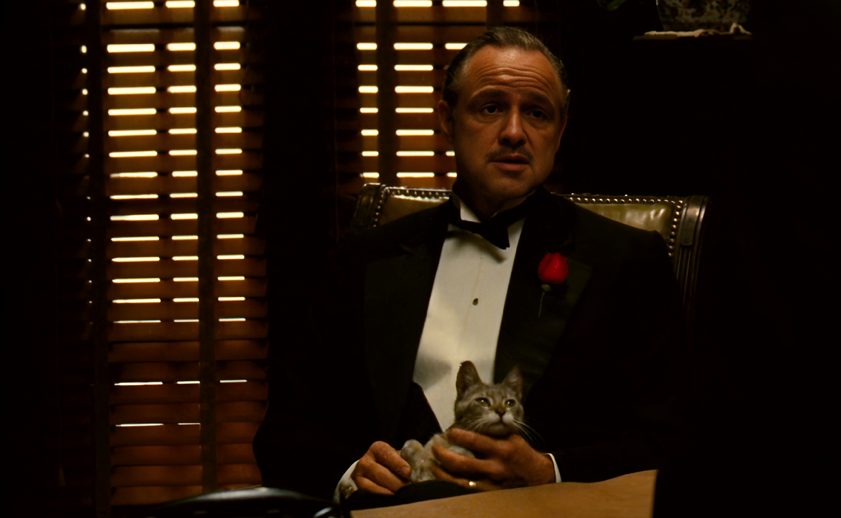 И всё же – сцену не стали переснимать. Потому что внезапно этот кот стал идеальным контрастом к тому, что говорил Вито Корлеоне. Он решает судьбы, говорит о власти, намекает на месть – и при этом гладит мягкое, расслабленное существо, которое доверчиво устроилось у него на коленях. В одном кадре – забота и угроза. Тепло и страх. И всё это – без единого дополнительного слова.