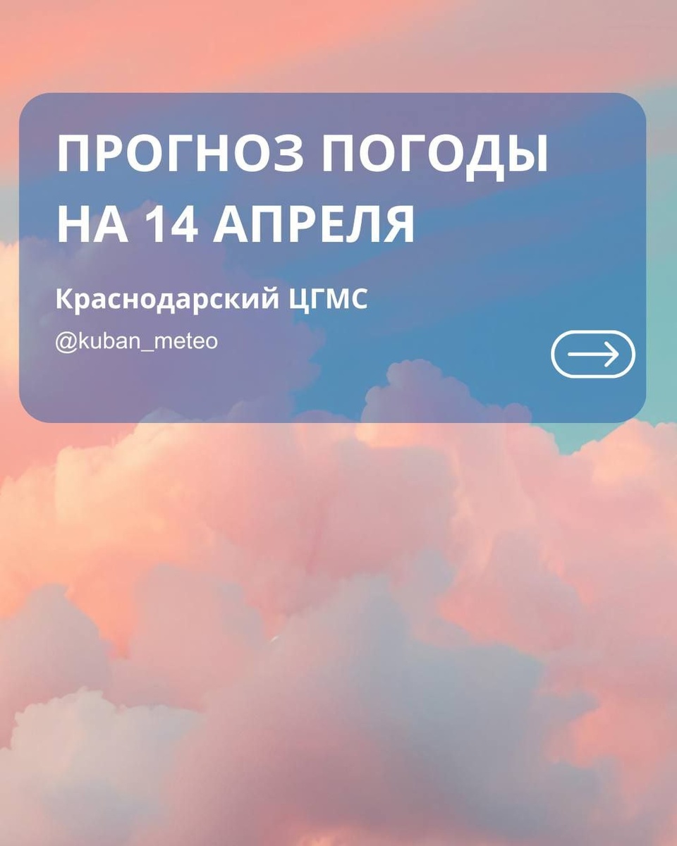 Завтра — понедельник, начало новой недели. Пусть она будет спокойной, продуктивной и тёплой — во всех смыслах! Погода в крае немного стабилизировалась, но заморозки всё ещё сохраняются, штормовое предупреждение остаётся в силе. 🌊 Черноморское побережье: переменная облачность, без осадков. Ветер северо-восточный 6–11 м/с, местами порывы 15–20 м/с. Температура воздуха ночью +4…+9°, днём +12…+17°. 📌 Прогноз составлен с 18:00 13 апреля по всемирному скоординированному времени (UTC). 🟥 В крае действует штормовое предупреждение по заморозкам. Пишите в комментариях, как вам апрель в Краснодарском крае — ждёте потепления или наслаждаетесь прохладой? Прогноз от @kuban_meteo