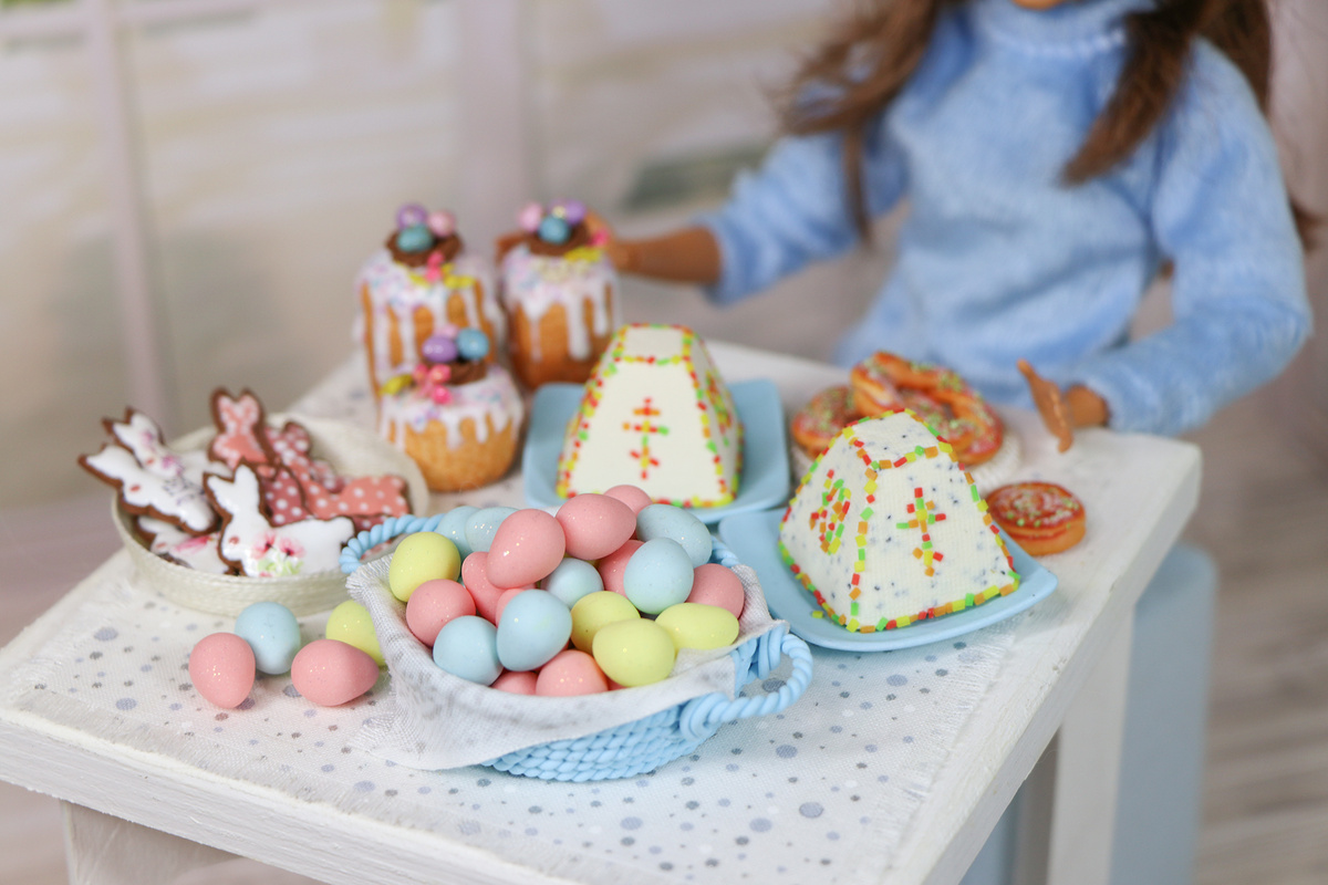 Пасха — один из самых светлых и любимых праздников с самого детства. Помню, как мы всей семьей готовились к нему: мама пекла ароматные куличи, а мы с братом увлеченно красили яйца, придумывая все новые узоры. Но больше всего я ждала творожной пасхи — особенного блюда, которое появлялось на нашем столе только раз в году. Её нежный вкус и особая форма в виде пирамиды до сих пор вызывают теплые воспоминания. Всем привет! Анна Оськина, художник, мастер лепки из полимерной глины и создания кукольной и коллекционной миниатюры. На протяжении многих лет я создаю авторские видео мастер-классы, где делюсь своими знаниями и опытом. Теперь, когда я выросла, эти тёплые воспоминания нашли отражение в моём творчестве. Каждый год я создаю пасхальные композиции из полимерной глины, в которых стараюсь передать ту атмосферу радости и волшебства, которая была в моём детстве. В самом сердце пасхального стола расположилась очаровательная корзинка, словно сошедшая со страниц кулинарного журнала. Каждое миниа