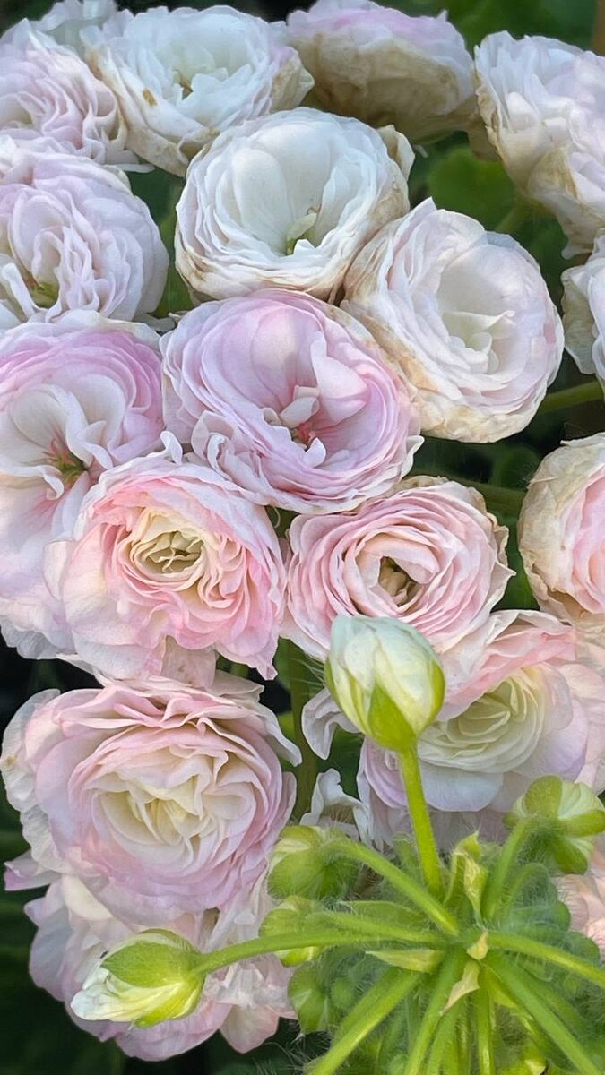 Ранункулюсы. Может показаться, что я обзываюсь☺️ А это всего лишь навсего цветы, которые так похожи на пеларгонии Та Эммануэль. Чего только сейчас не встретишь в цветочных салонах ☺️